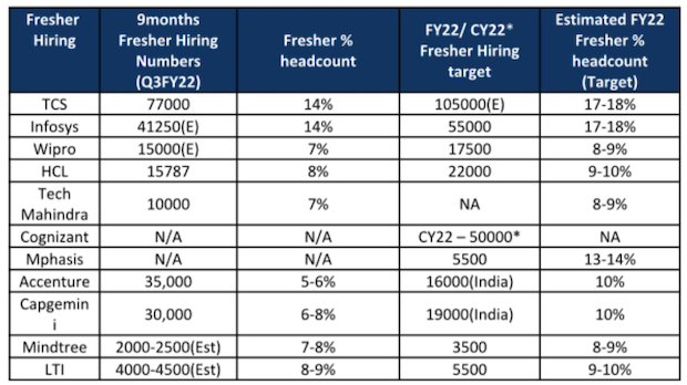 Indian It Players To Hire 360 000 Freshers For Fy22 Unearthinsight Study Business Standard News